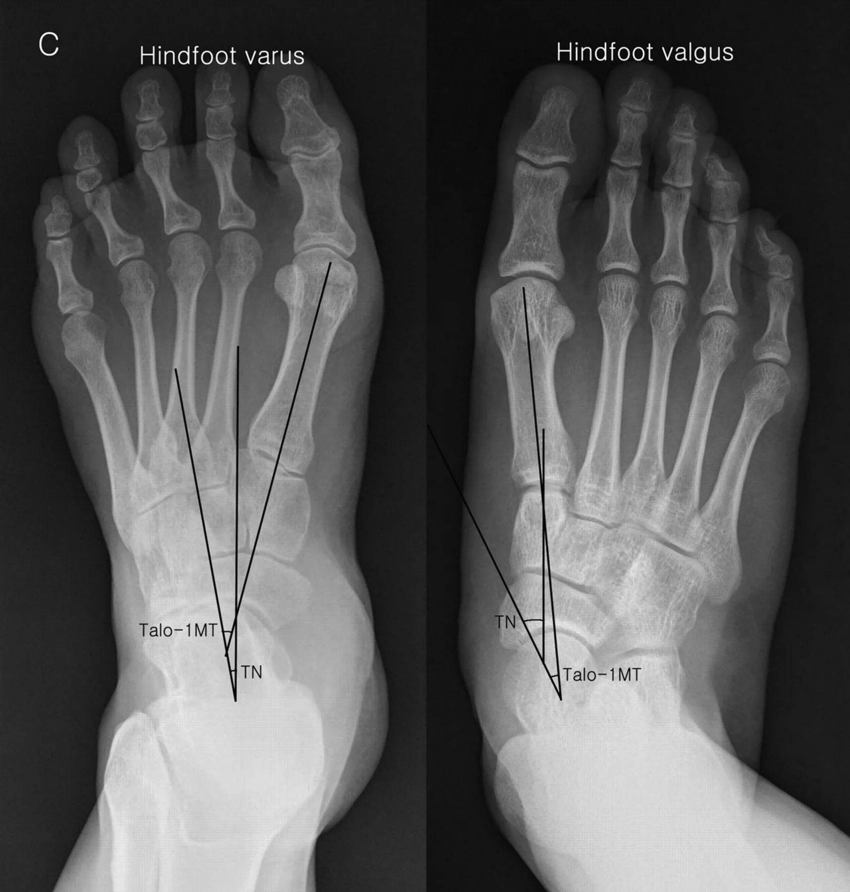 - осмотр с пальпацией, оценкой высоты свода стопы, взаимного расположения ее отделов, положения внутренней и внешней лодыжек;